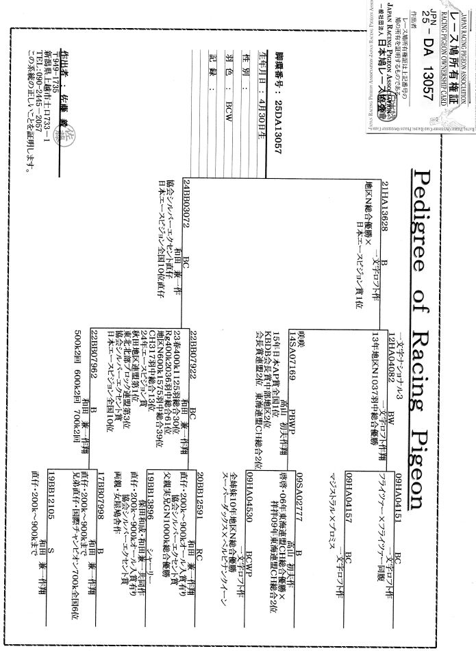 | 一文字ロフト作(地区N総合優勝×15年日本AP1位)×日本エースP10位直仔 | オークションNo: 1759374690 |