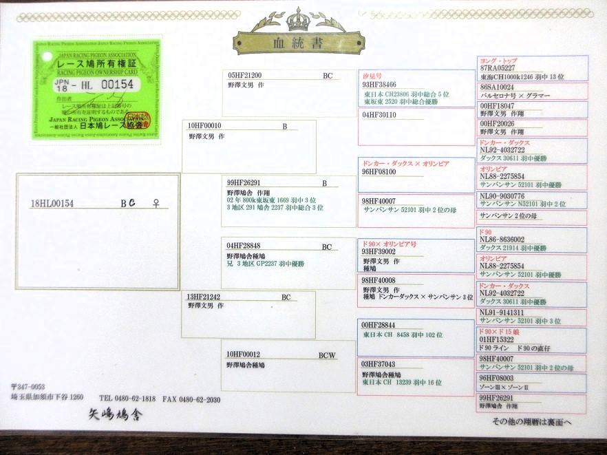 | 18HL00154 BC ♀ 柿目 中型 矢嶋作 鳩の発送はゆうパック送料後払いで送ります 沖縄県や離島には送れません 鳩の持ち込み手数料として1羽1,000円頂きます 落札金額にプラス1,000円振り込んで下さい |