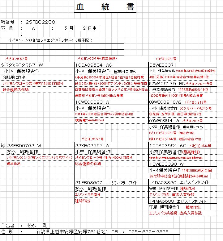 | 【25FB02238W・メス】「松永鳩舎作」 貴重なパピヨン系ホワイトでよい種鳩になると思います。 超長距離系。手持ちの良い鳩です。 パピヨンの血統が、より多くでています。 父 小林保美鳩舎作 超長距離系・1400K総合優勝孫 直系に優入賞多数 母 松永剛鳩舎作 長距離系・パピヨン×エジンバラ系直仔 直系に優入賞多数所有者:新潟春日「松永 剛 鳩舎」 発送はすべて元払い3,000円、第一貨物営業所留めで1箱4羽までとなります。また、第一貨物でも送れない営業所がありますので、確認して下さい。なお、九州・四国・沖縄は、発送できません。 性別は、 メス 若のため性別の誤りはご容赦下さい。 詳細は系統書を載せましたのでご覧下さい。 |