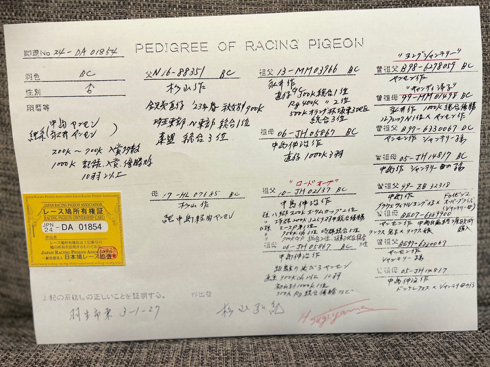 | 24-DA01854BC雄 3年連続全日本優秀鳩舎主要戦力、中島ヤンセン近親種鳩 | オークションNo: 1762341683 |