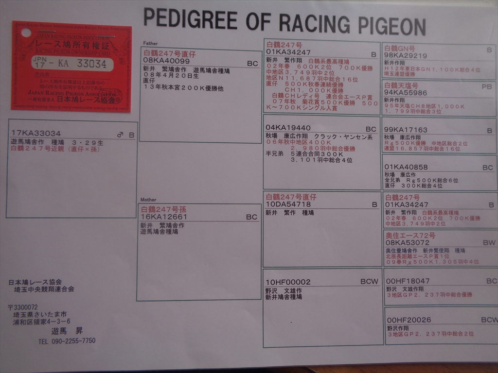 17KA33034 B ♂ 白鶴247号孫