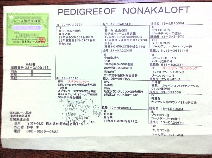 | スペシャルハリー号(チャンピオンカップ600k総合優勝)の娘 B ♀ | オークションNo: 1763203079 |