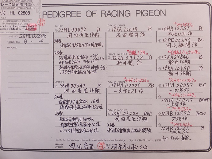 | 25年02808 ♀ 25年東日本GN1,758羽中総合141位×25年東日本GN1,758羽中総合236位 | オークションNo: 1763338709 |