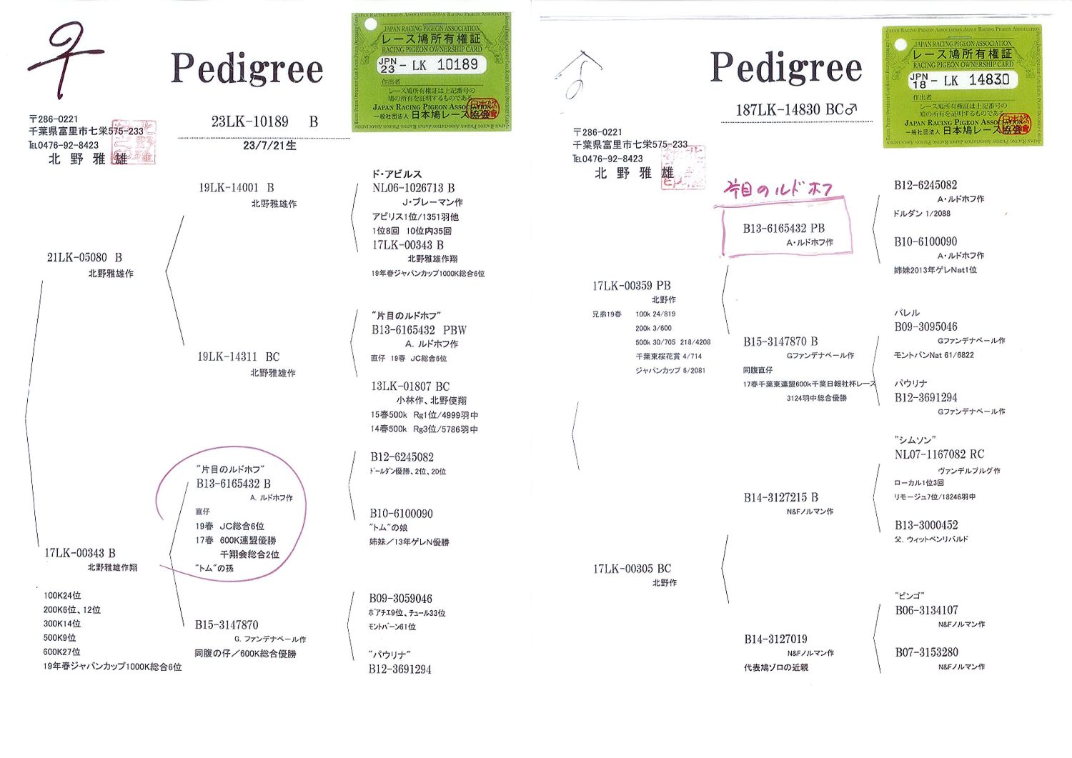 ジョイバレー北野氏 片目のルドホフ 近親 25-00241 B