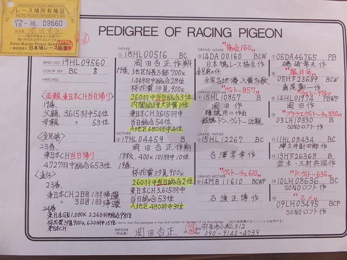| 19年09560 ♂ 総理大臣賞1位×東日本CH3,615羽中当日総合53位 | オークションNo: 1763860644 |