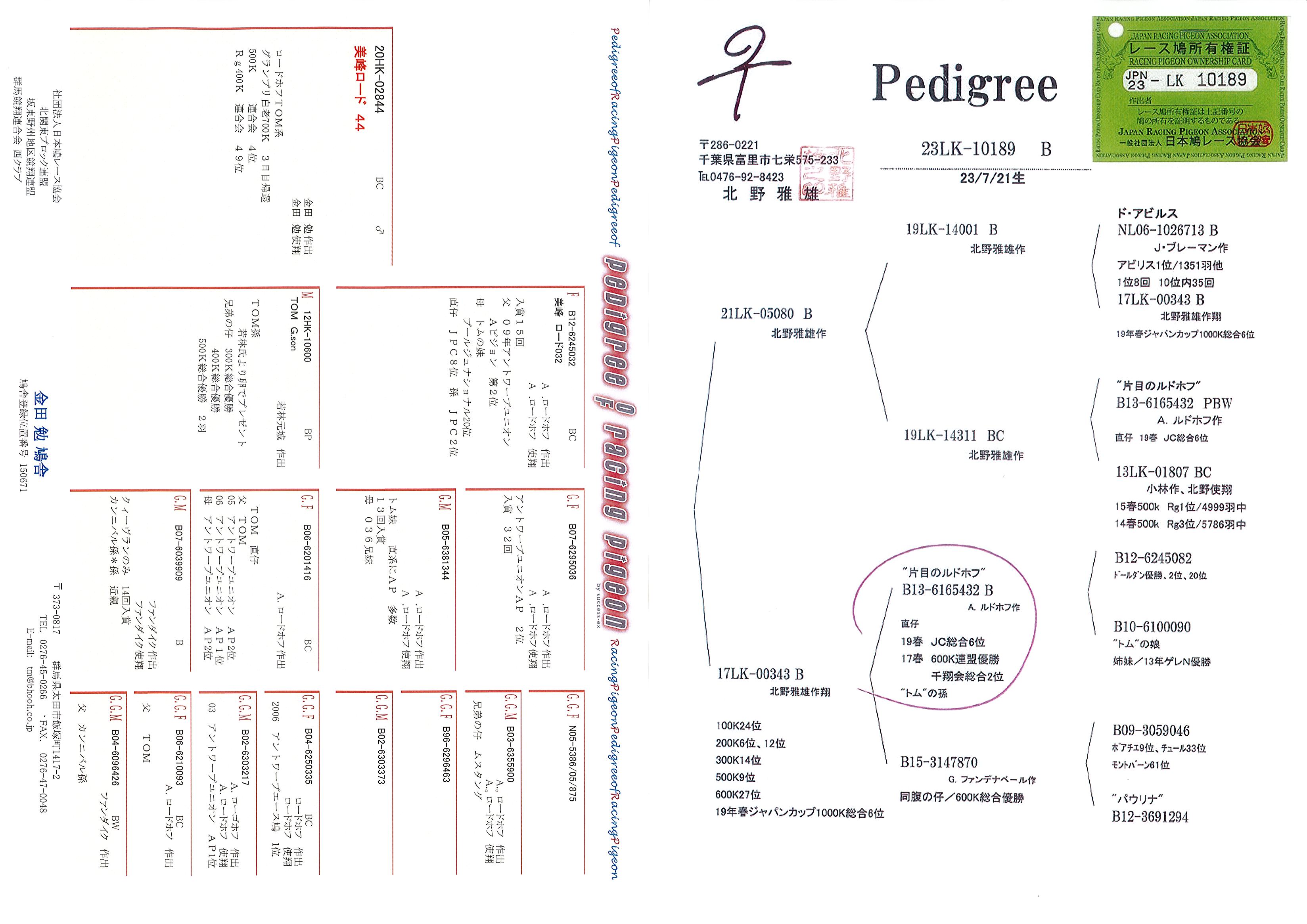 父 TOM近親 500K 4位 母 北野片目のルドホフ 近親