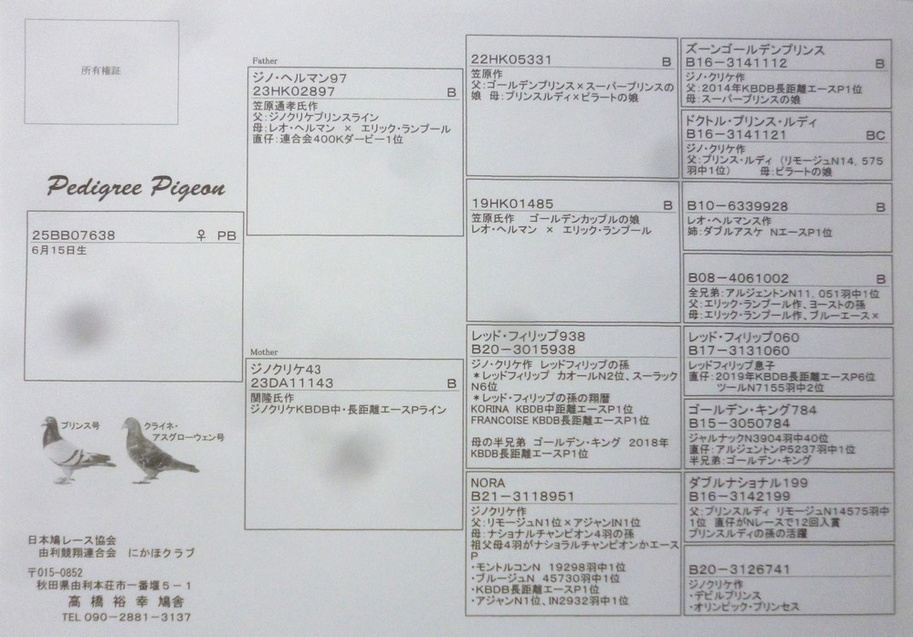 | メスのようですが、若鳩のため性別は不明とさせていただきます。発送はゆうパック後払い、第一貨物着払い、JAL便です。発送手数料500円のご負担をお願いします。発送の手配の都合上落札後早期に連絡くださるようお願いします。落札後メールが届かないことが時々あります。連絡ないときは電話連絡いただければ助かります。 |