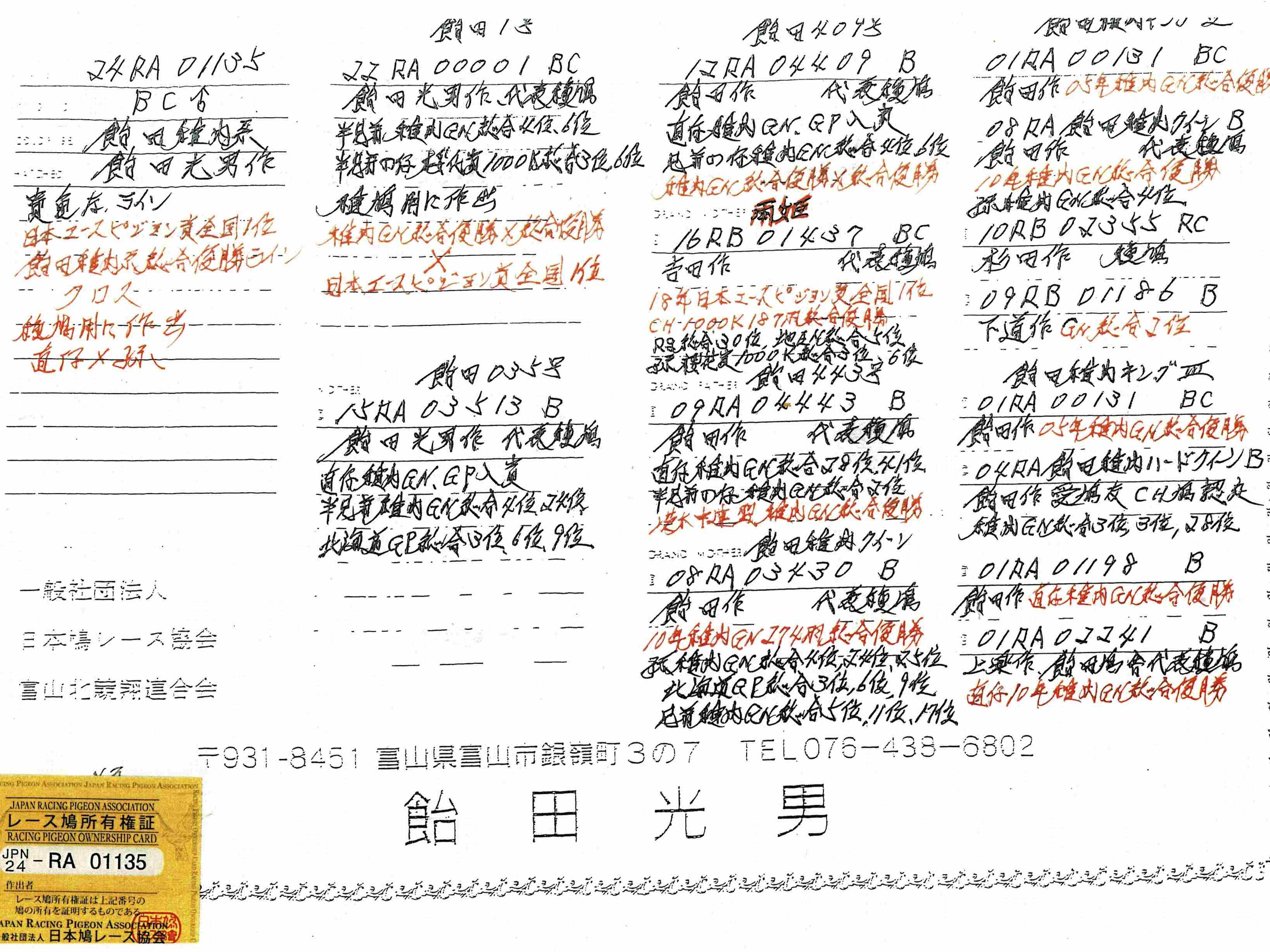 飴田光男鳩舎作出鳩