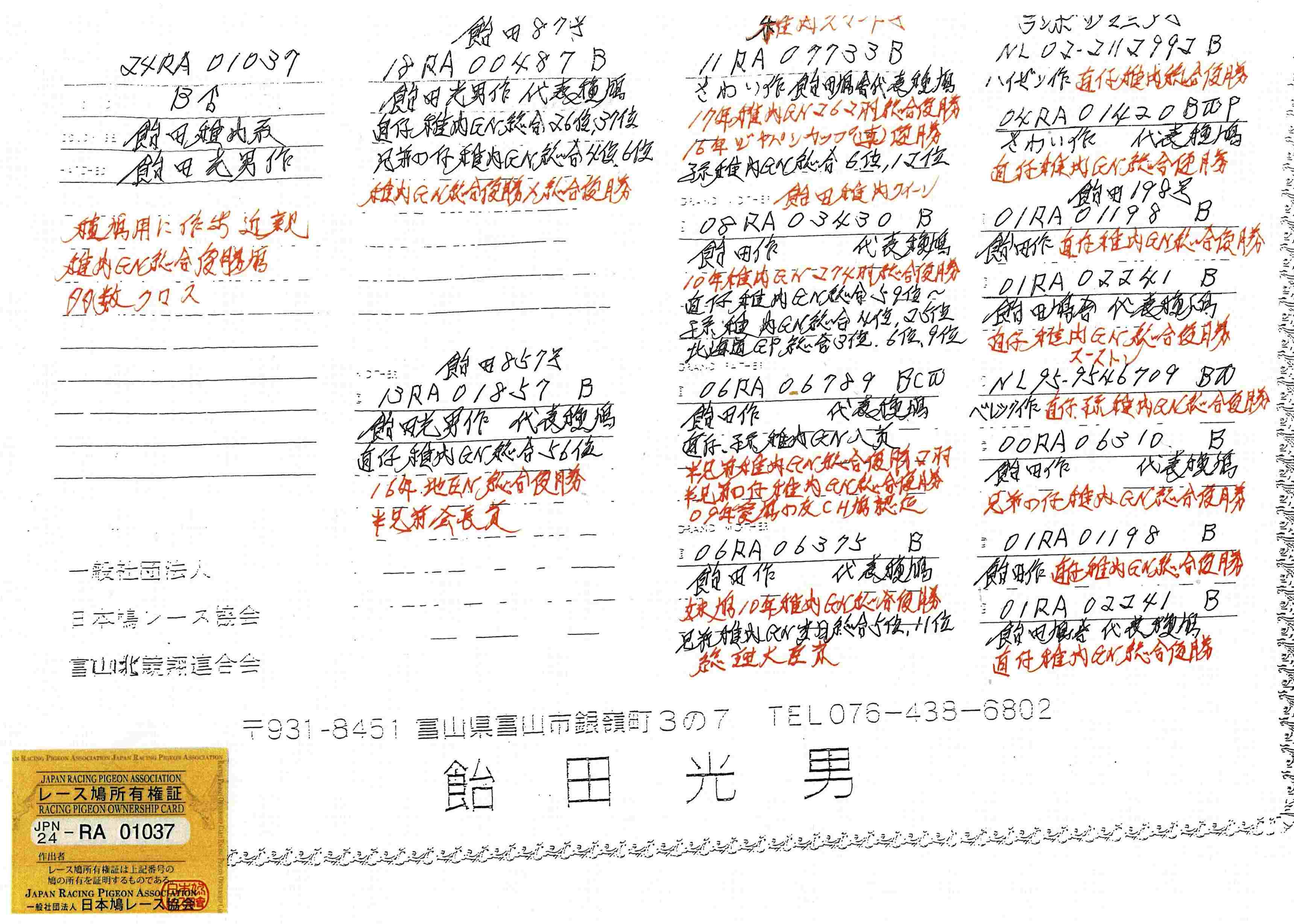 飴田光男鳩舎作出鳩
