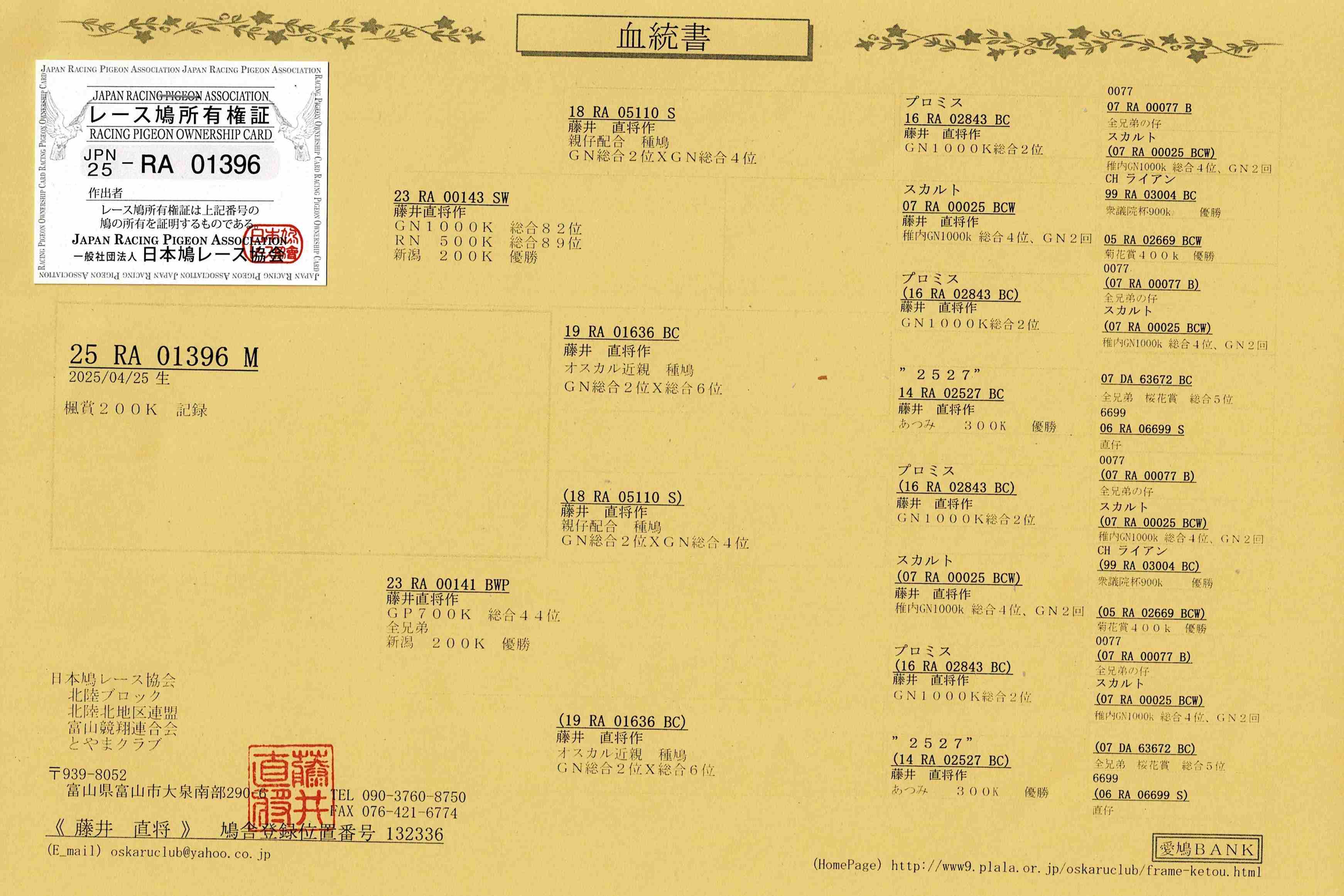 北陸藤井直将鳩舎作出鳩