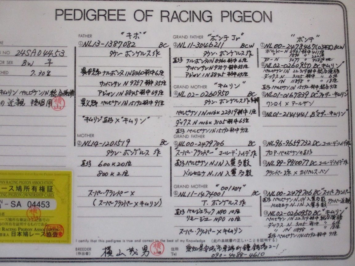 | T.ボンゲルスの銘鳩キムリン(ペルピナンIN総合優勝、ダックスN総合6位)の近親孫 | オークションNo: 1766723670 |