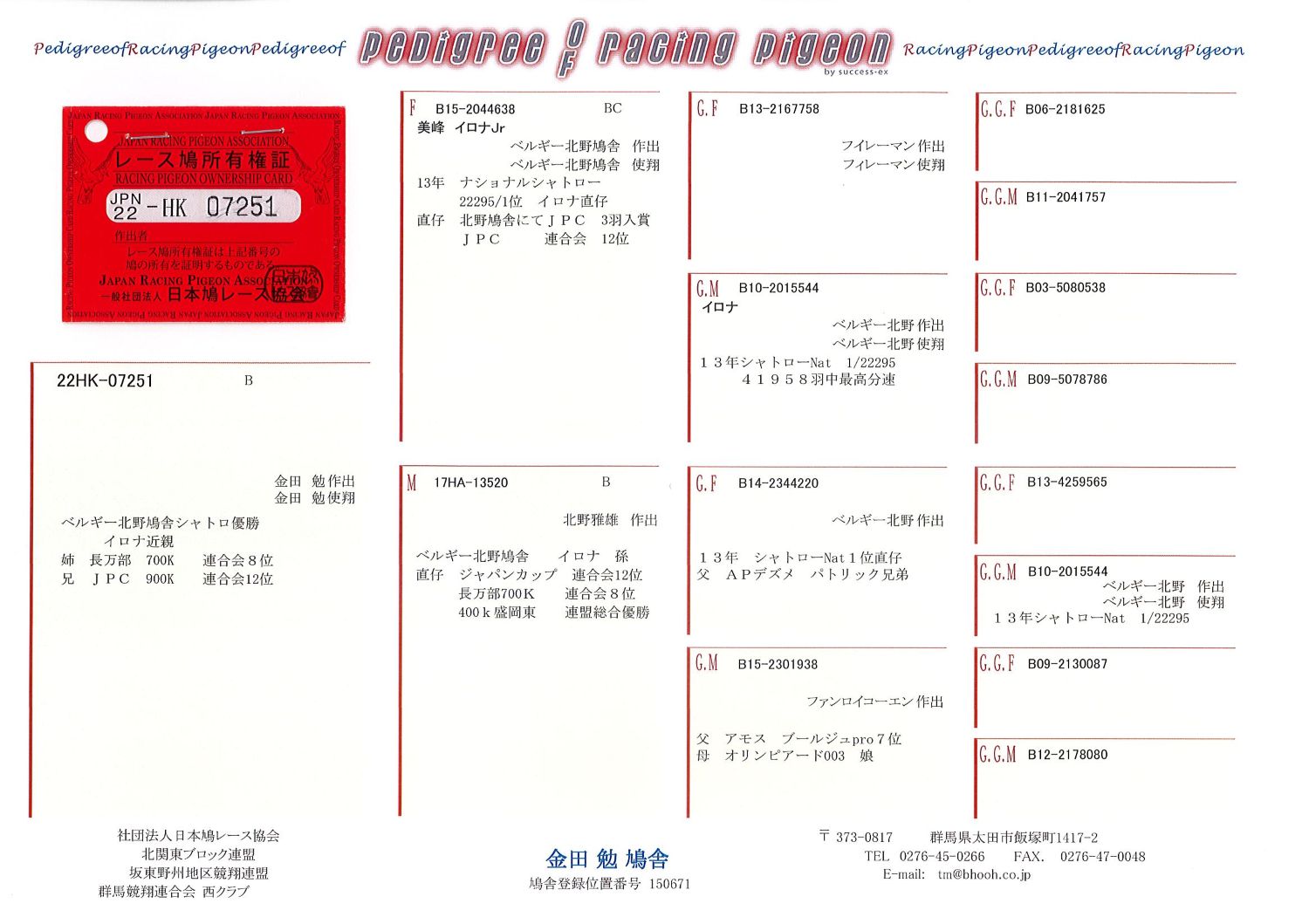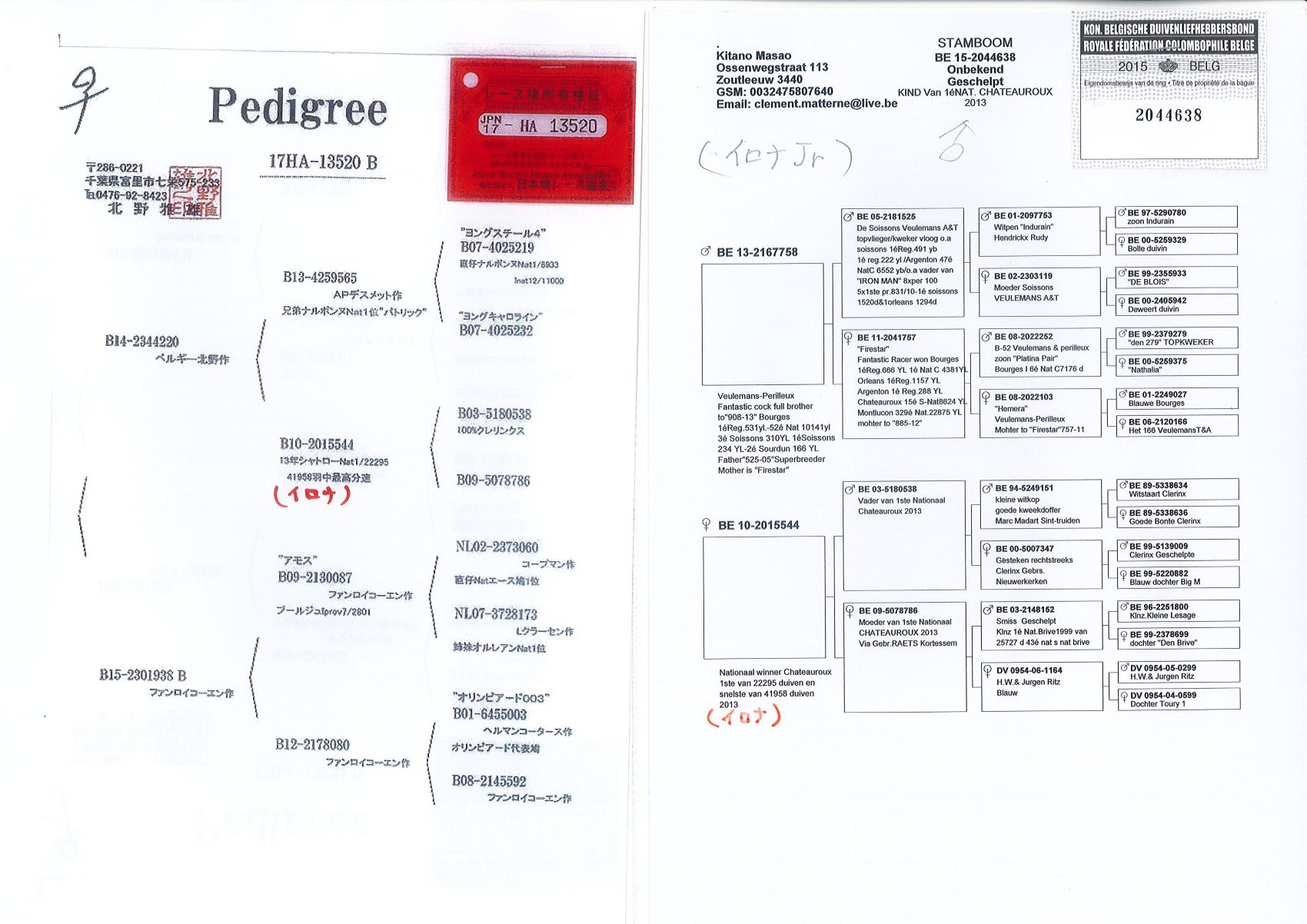 | 両親の血統書を添付ご覧ください 直仔 白老GP700k 連盟 25位 長万部地区N700K 飛翔2羽 |