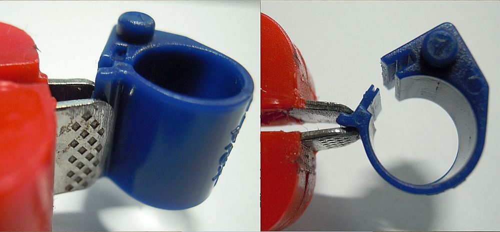 チップリング・プライヤー チップリングの脱着に苦労されて居る方も多いかと・・・ この専用プライヤーなら楽に作業がはかどります。 リングの隙間にプライヤー先端が入りにくい場合は、写真3のように耳を挟んでコジると取れ易いです、 少々面倒ですが・・先端をヤスリで削って薄くする手もございます。 送料250円 |