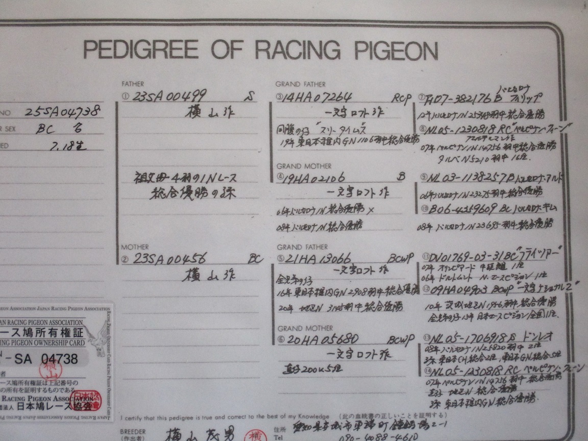 | 25SA04738 ♂ 柿眼 長距離インターナショナルレース総合優勝鳩の集大成 若鳩に付き性別の間違いはお許し下さい。 |