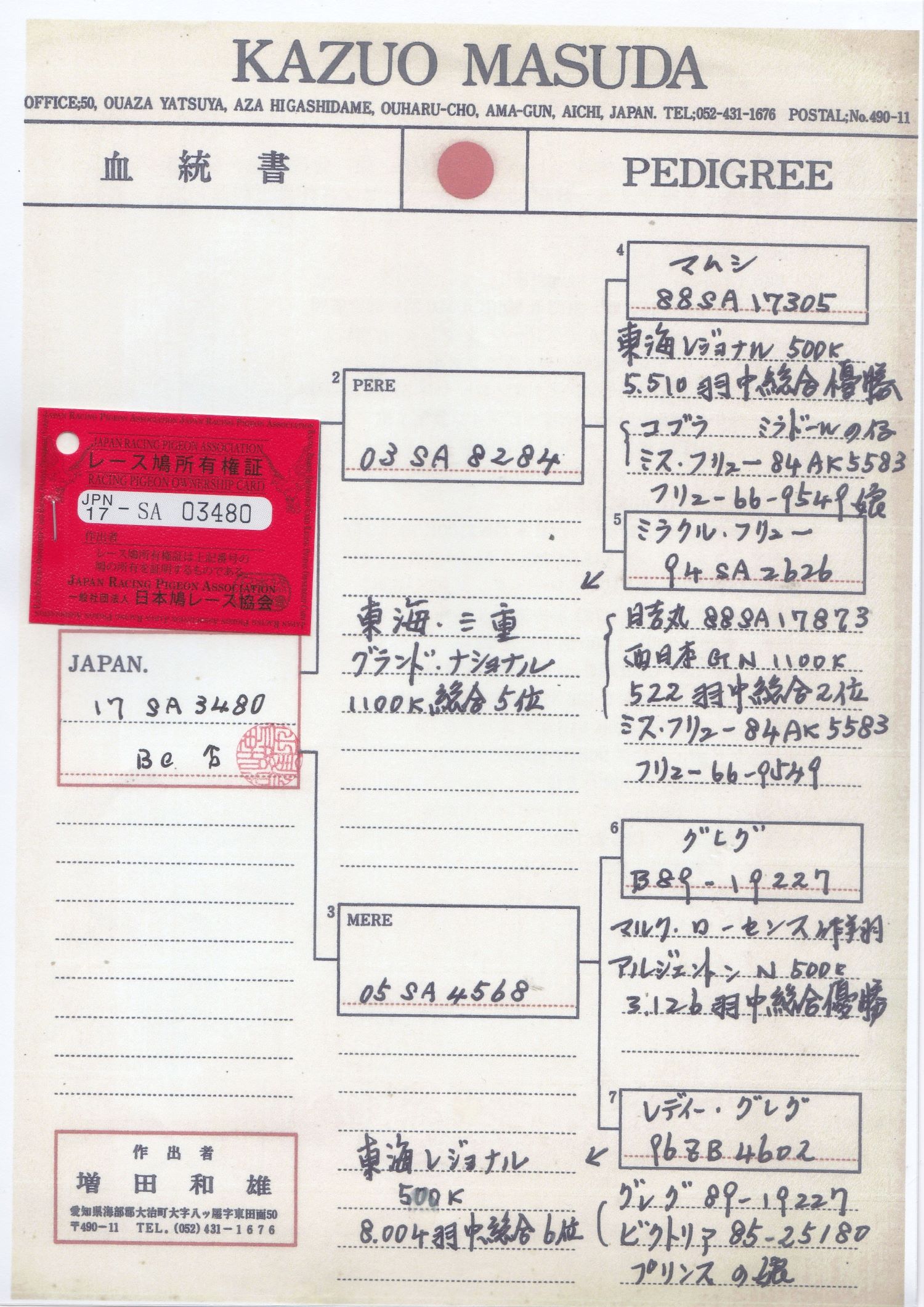 | 増田社長作出 元柴田種鳩 直仔800Kまで記録あり 17SA03480 BC ♂ 詳しくは血統書をご参照下さい。 生体発送時に血統書を同封致します。ゆうパック(後払い)にて発送となります。 ※送料につきまして、どなた様に対しましても、ゆうパック代金、ダンボール代、事務手数料、指定郵便局持ち込み実費、が加算された請求書が1か月前後ほどで届きますので、そちらでお支払い下さい。 ※新規IDの方は落札後2日以内に入金できる方のみ入札下さい。以上、ご了承の上でご入札下さい。 |