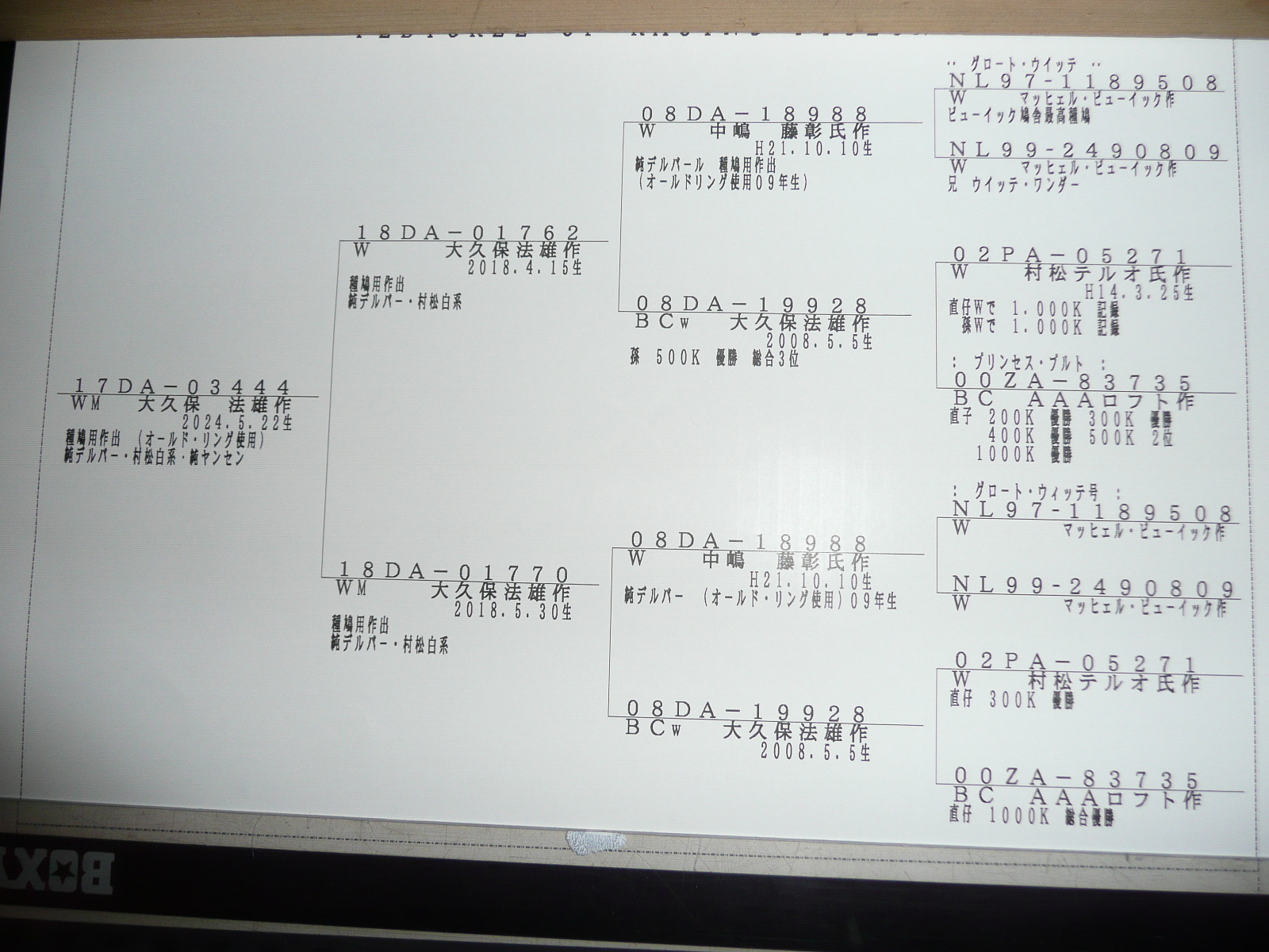 | 02-03 17DA-03444 WM ♂ (オールドリング使用2024年生) * 上記血統書参照 * 性別の誤りは、ご理解下さい。 * 神経質な方の、ご入札はお控え下さい。 * 落札後郵便番号・住所・氏名・電話番号お願いします。 * 鳩落札代金+持ち込み料1.000円ご負担ください。 * 御自宅まで着払いにて発送致します。 * 送れない場合は、キャンセルさせて頂きます事ご理解下さい。 * 沖縄県及び離島への発送出来ません。 * 速やかな取引を心がけております。 * 090-2303-0891 0297-95-0956 * 上記文面を、ご理解の上入札お願いします。 |