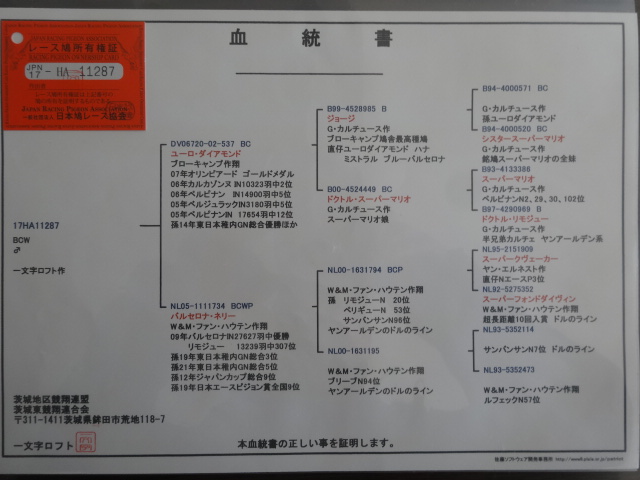 | 17HA11287 BCW ♂ 一文字ロフト作 ユーロダイヤモンド✕バルセロナネリー 現役種鳩 昨年も作出しております。鳩の発送はゆうパックで土曜日の発送になります。落札金額+1,000円(持ち込み料金)の振り込みをお願い致します。 若鳩の性別は100%ではありません。老鳩については作出の保証はありませんので年齢を考慮に入札をお願い致します。 |