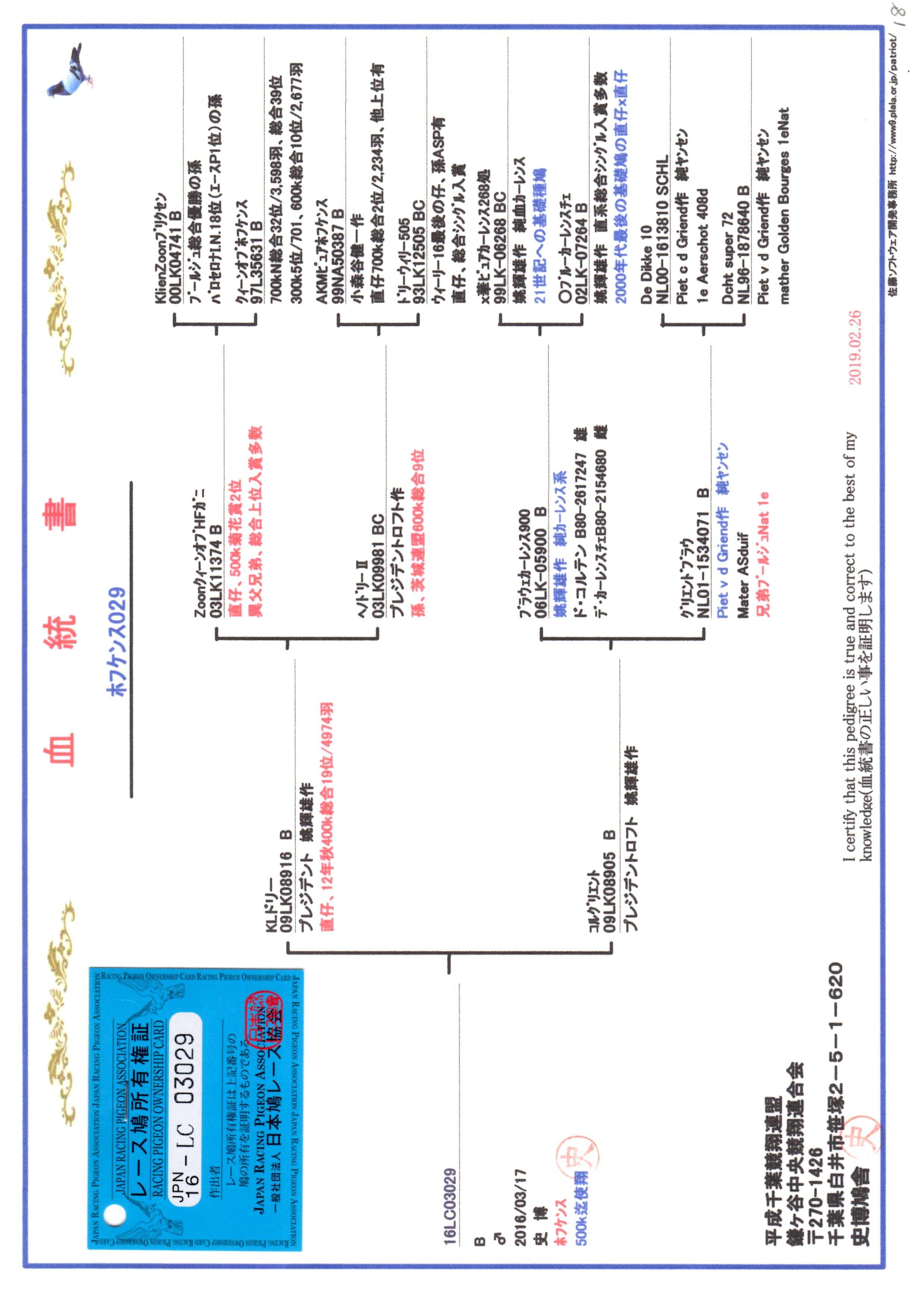 | 16LC03029 ♂ B 石目吏 作 ホフケンス系 500K 両親プレジデントロフト作 ホフケンス系 | オークションNo: 1770079355 |