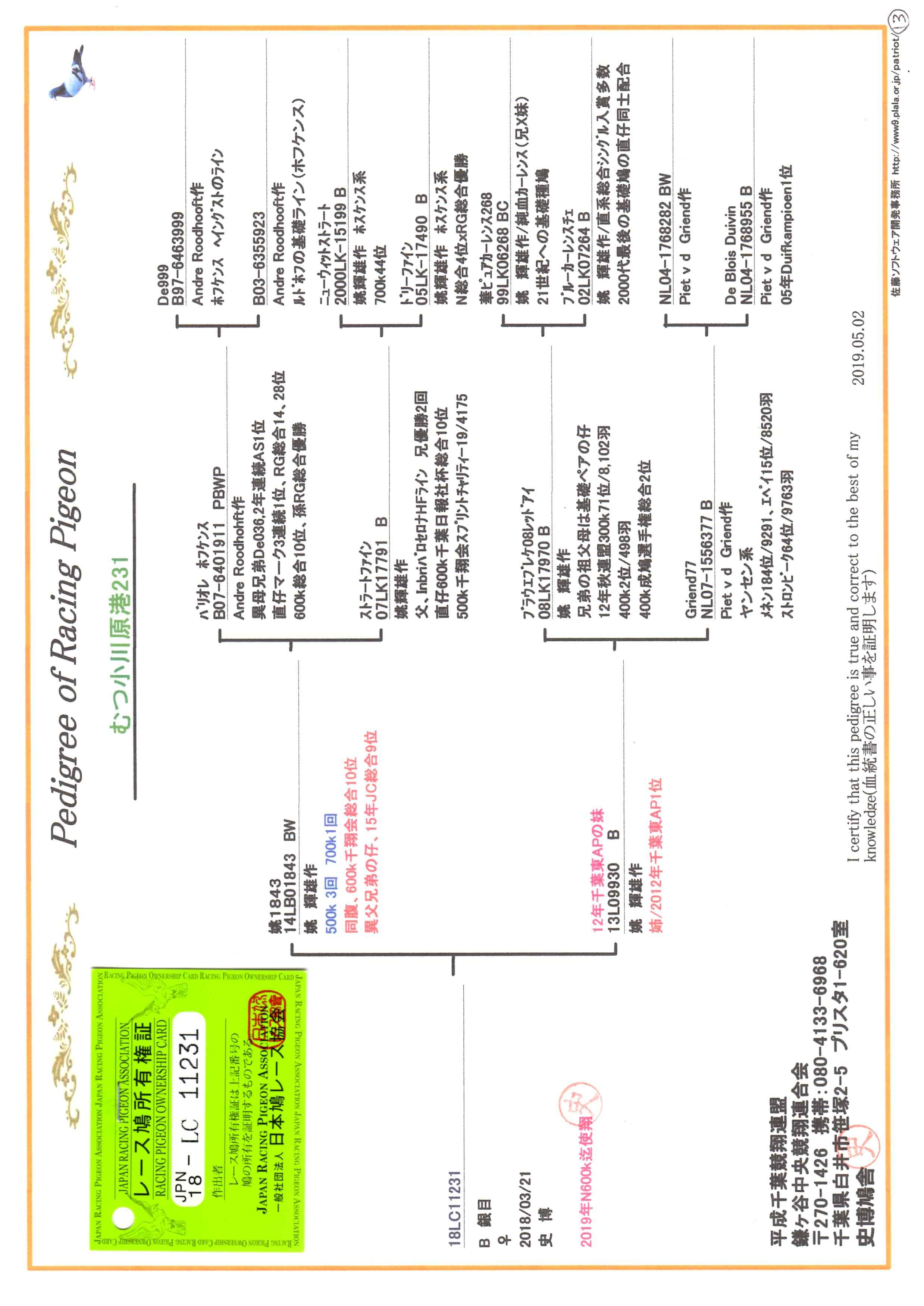 | 18LC11231 B ♀ 石目 吏 作 ホフケンス系 600Kまで | オークションNo: 1770079687 |