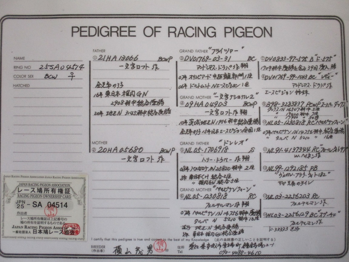 | 両親一文字ロフト作フライツアー、一文字ナショナル2、ドンレオ、ペルピナンクイーンの孫 | オークションNo: 1770349469 |