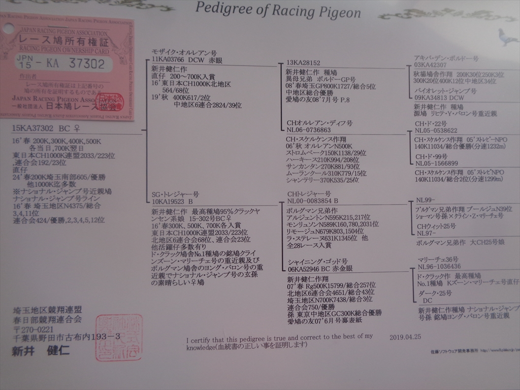 15KA37302 BC ♀ 1000K入賞鳩 ![]() |