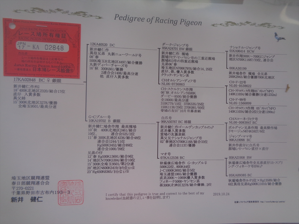 17KA02848 BC ♀ 半姉300K埼玉最高分速