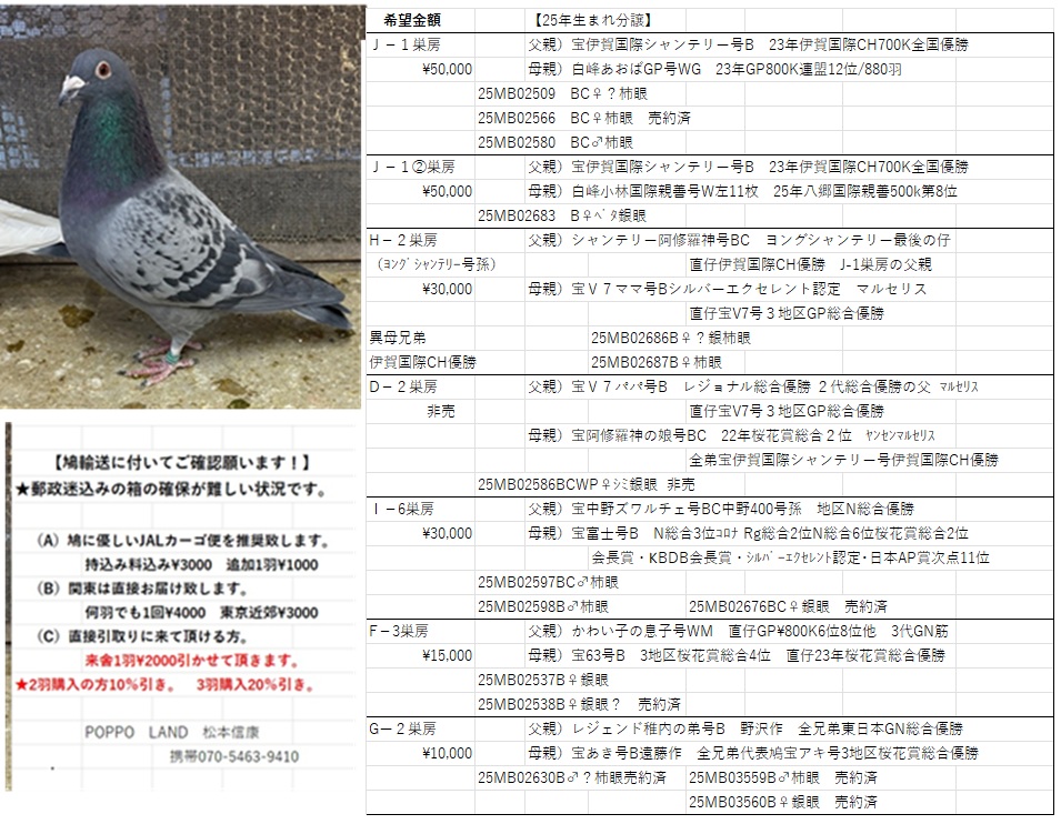 | 25MB02597BC♂ 柿眼 血統書参照ください。・・・・・・来舎引取り歓迎¥2000引き。・2羽10%引き。3羽20%引き。・・・・・・・・・・・・・・・・・・・他白系鳩多数在舎。 ///金額間違えで再出品 |