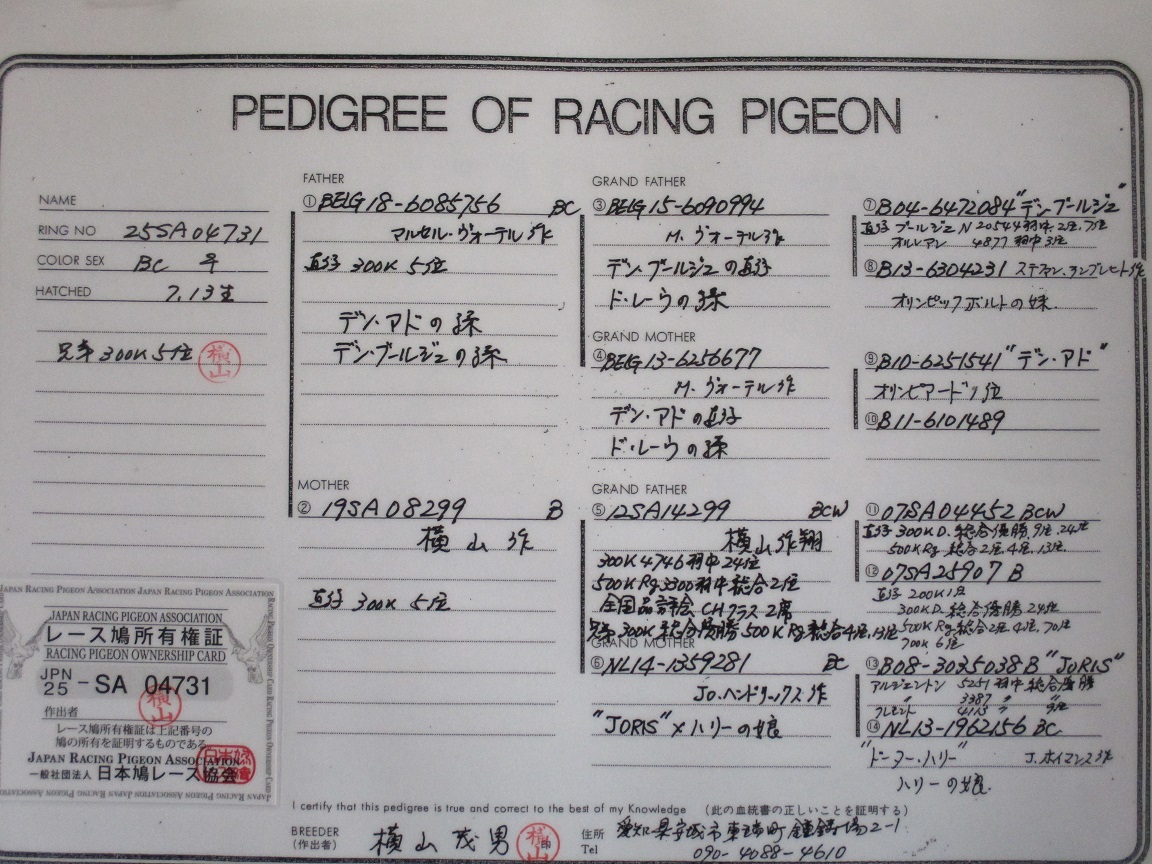| 25SA04731 BC ♀ 銀眼 兄弟300K5位 中距離向き 若鳩に付き性別の間違いはお許し下さい。 |