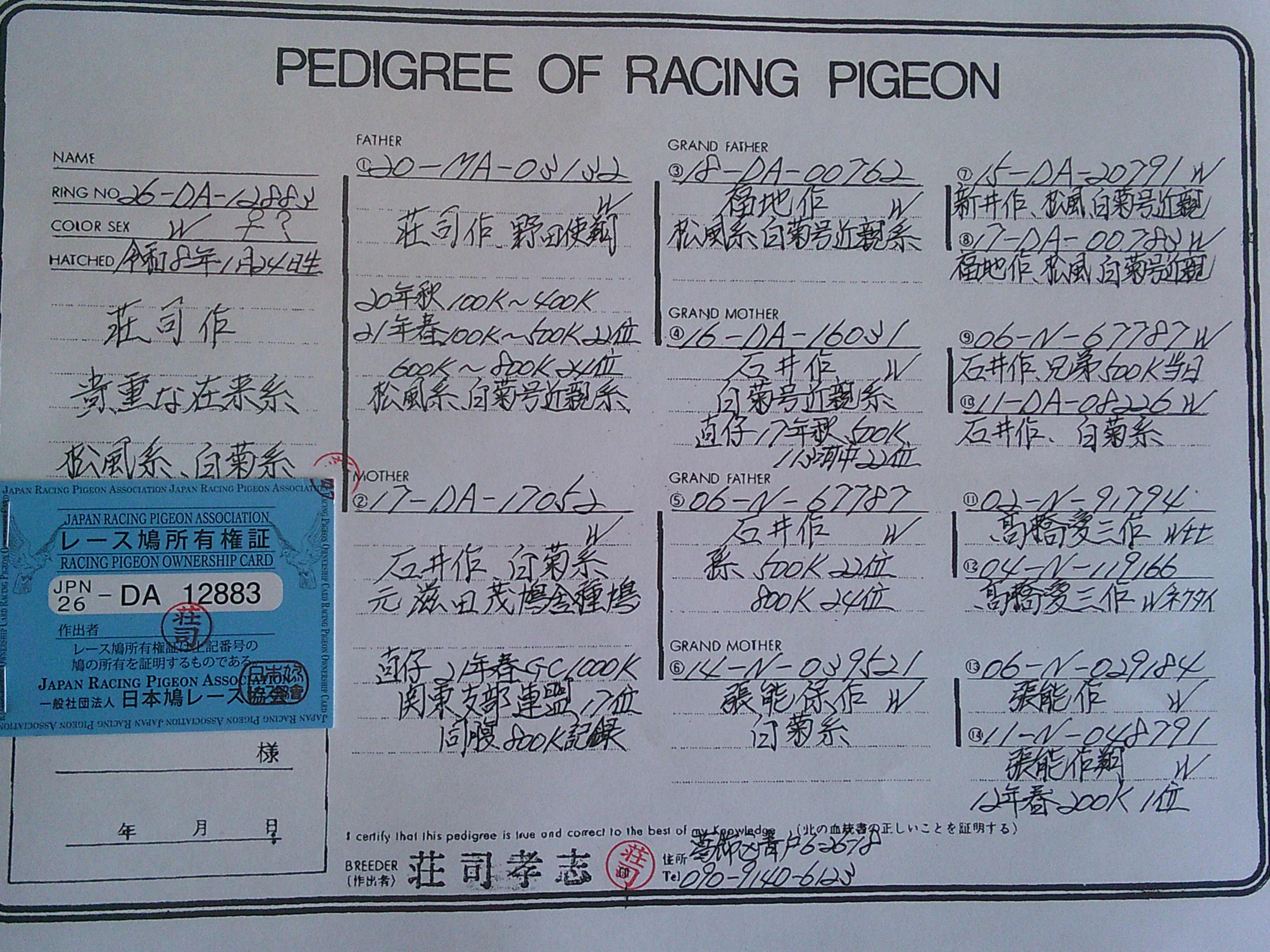 | 代理出品。 詳細は系統書を載せましたのでご覧下さい。*オークション終了後は取引伝言板にてご連絡させていただきます。鳩の発送はゆうパック送料後払いで送ります 沖縄県や離島には送れません 鳩の持ち込み手数料として1羽1,000円頂きます 落札金額にプラス1,000円振り込んで下さい 。*性別判定は、100%では有りませんので、御理解の上、御入札を御願いします。 |