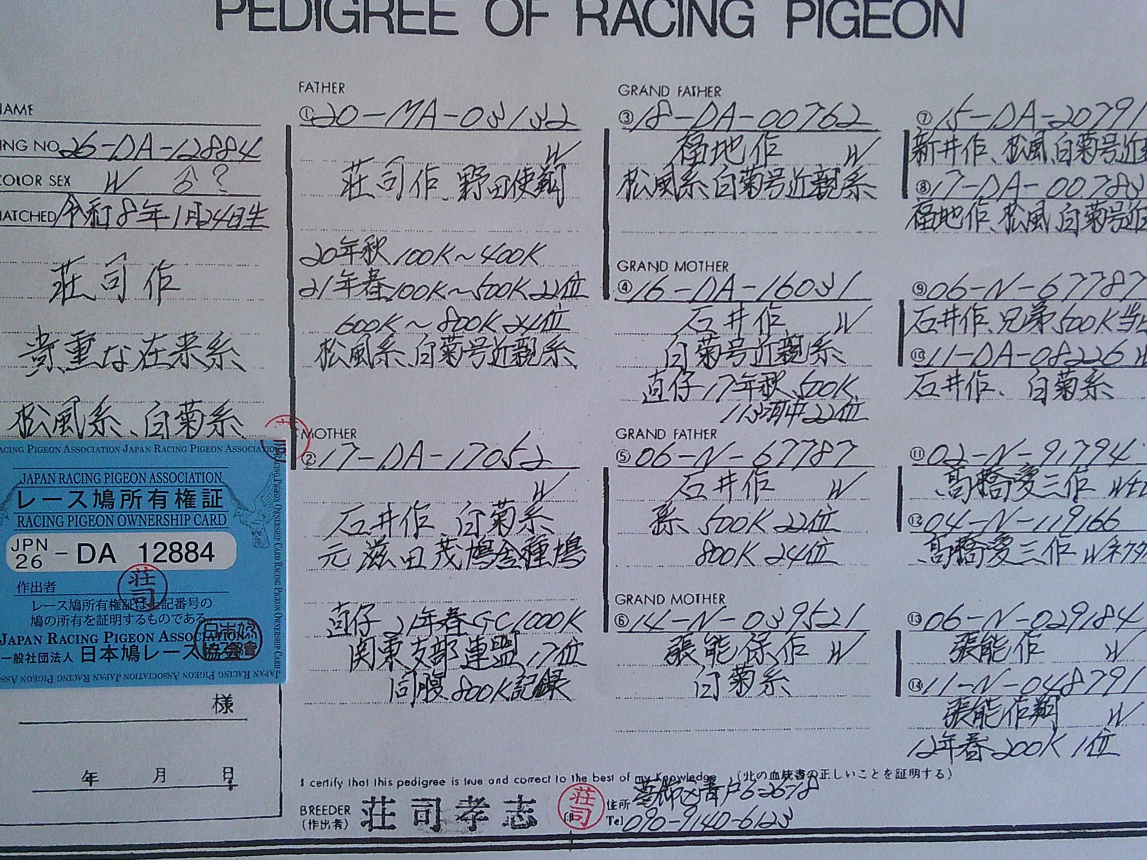 | 代理出品。 詳細は系統書を載せましたのでご覧下さい。*オークション終了後は取引伝言板にてご連絡させていただきます。鳩の発送はゆうパック送料後払いで送ります 沖縄県や離島には送れません 鳩の持ち込み手数料として1羽1,000円頂きます 落札金額にプラス1,000円振り込んで下さい 。*性別判定は、100%では有りませんので、御理解の上、御入札を御願いします。 |