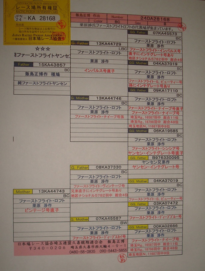 | ヤンセン兄弟作の銘鳩インテグレート号の近親になります。インパルス号、ビンテージ号、ナイーブ号のラインです。素晴らしい♀の種鳩になります。鳩詳しくは血統書をご覧ください。 |