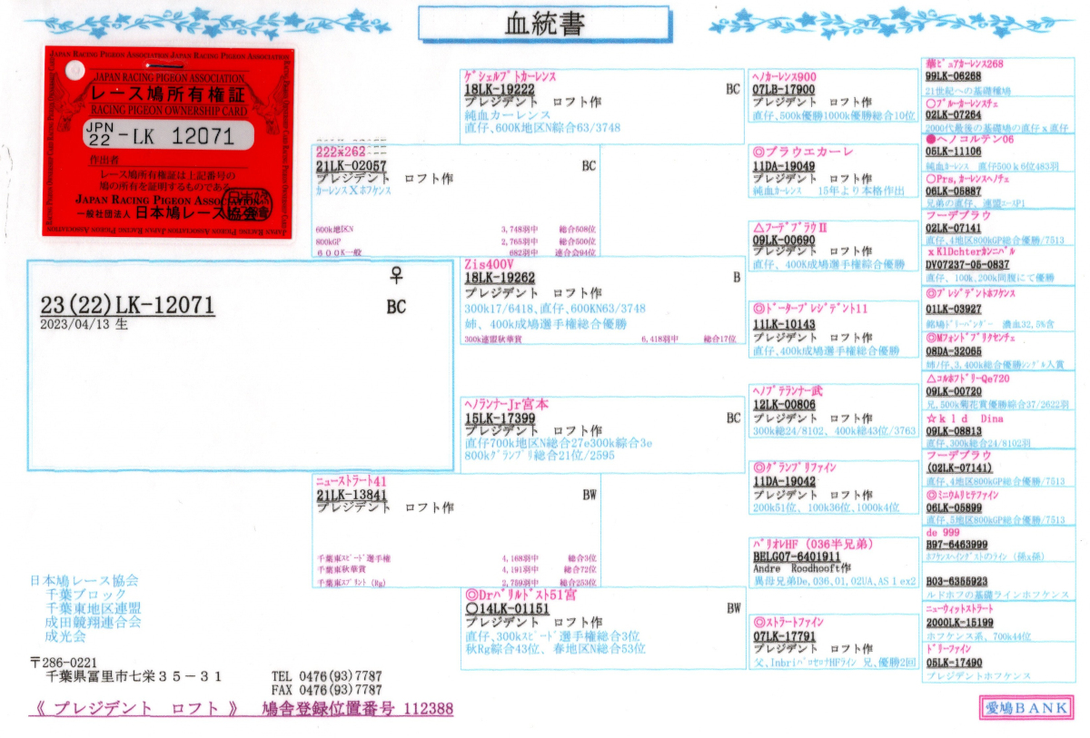 千葉東の強豪鳩舎プレジデントロフト作の鳩です。 ![]() |