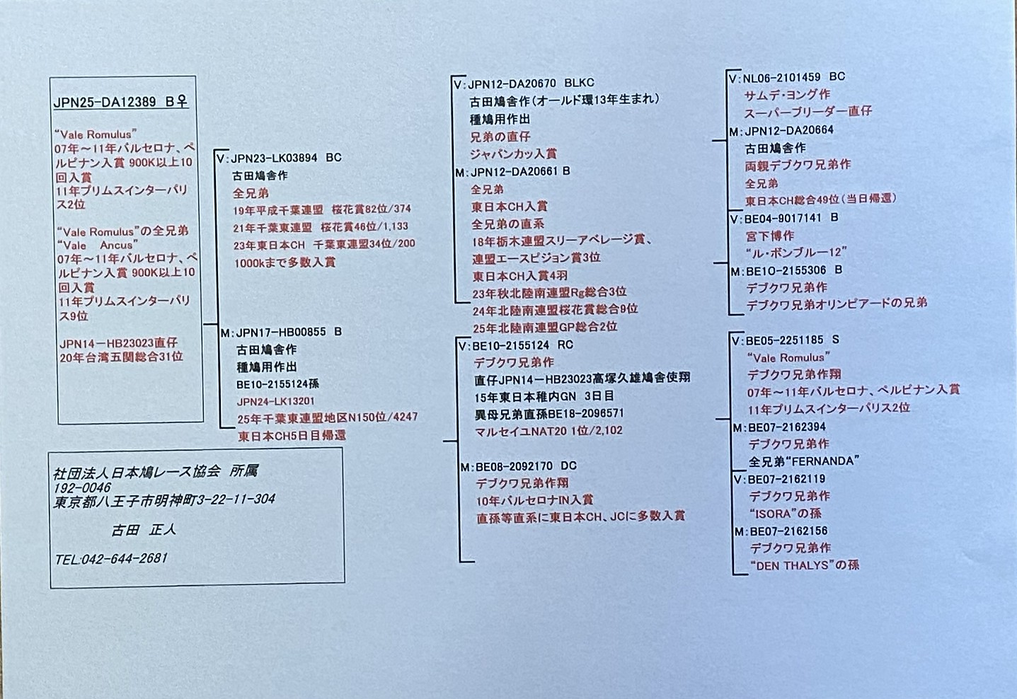 | オス親の全兄弟は、1000k入賞が3羽います。メス親は、デブクワ兄弟のバルセロナ入賞の系統です。 |