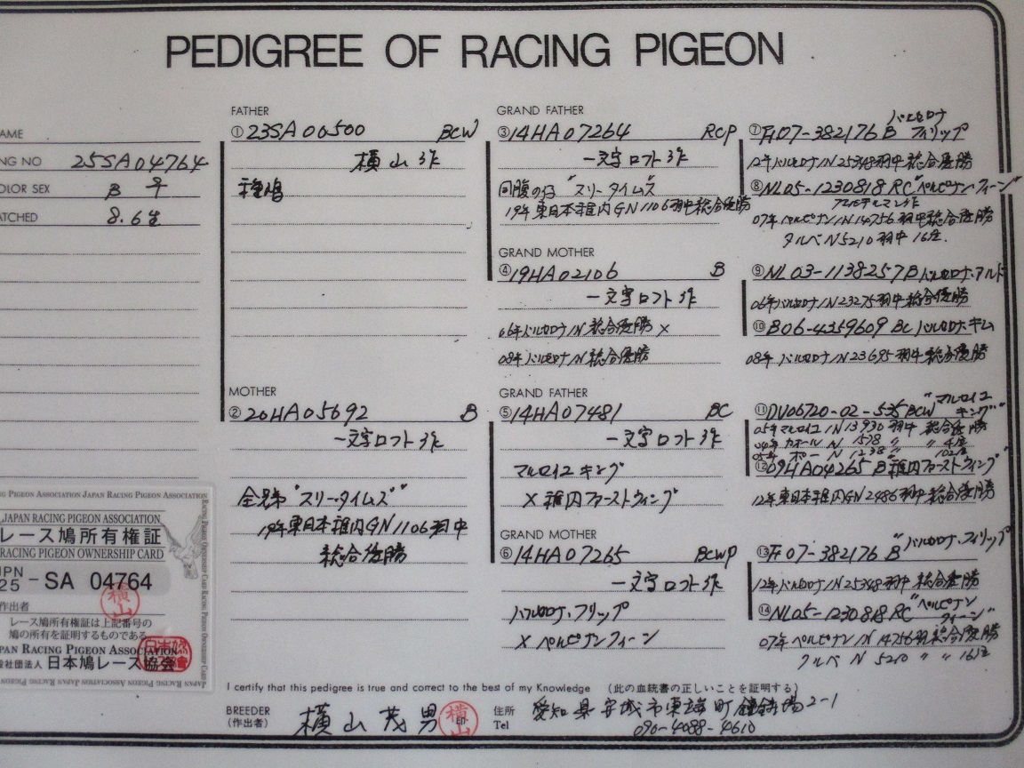 | 25SA04764 B ♀ 柿眼 長距離総合優勝の集大成 若鳩に付き性別の間違いはお許し下さい。 |