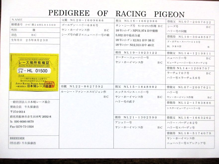 ヤンホーイマンス作(ニューハリー号の孫)×ハリー号の孫 BC ♂ ストッバード ![]() |